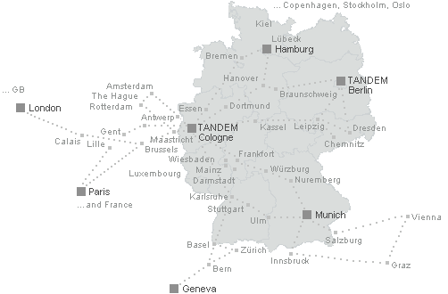 Tour SwitzerlandTour NorthTour EastTour SouthTour Cgn AreaTour Frankfurt/MainTour NetherlandsTour BelgiumTour FranceTour LondonTour AustriaTour Southeast